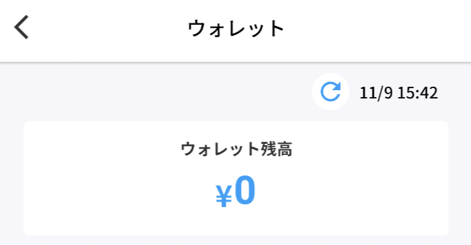 6. アプリマイページ "ウォレット" 画面に戻り、右上の更新ボタンを押下