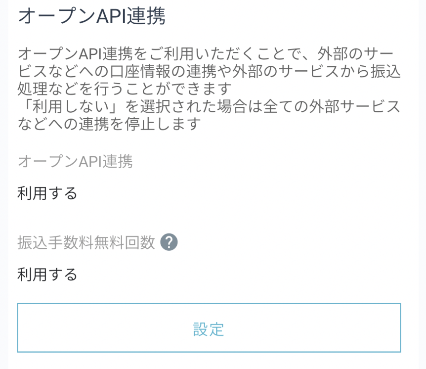 4. 下にスクロールし「オープンAPI連携」の "即時振替"「設定」を押下
