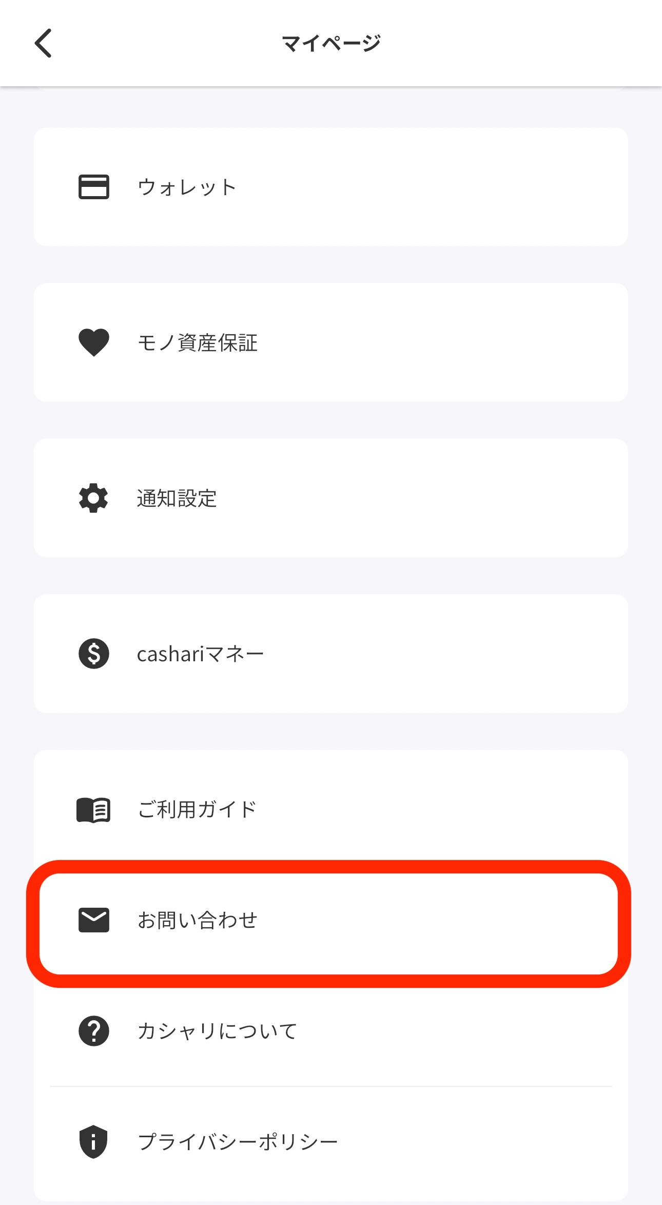 アプリからのお問い合わせ:"マイページ" > "お問い合わせ"